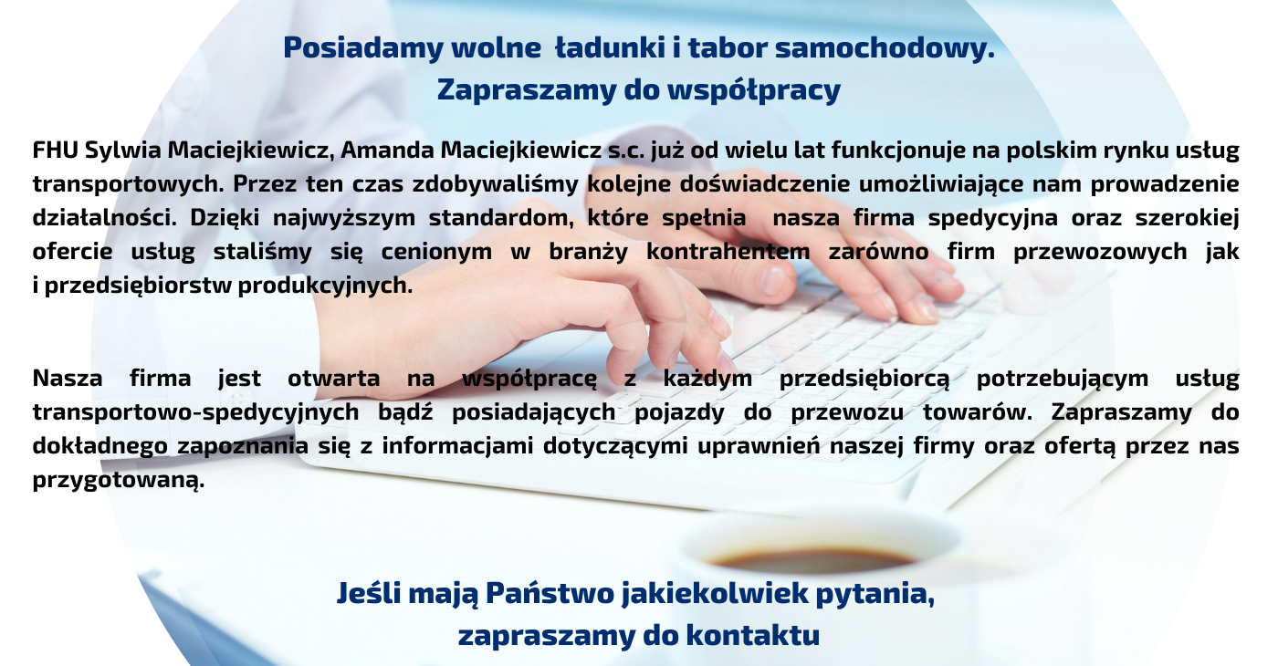 Posiadamy wolne ładunki i tabor samochodowy. Zapraszamy do współpracy